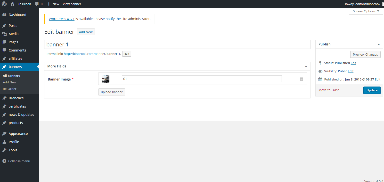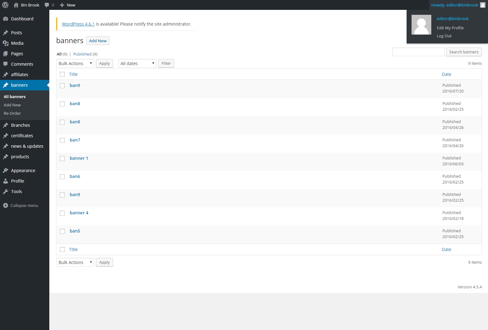 Admin can add, edit or delete banners from here.All created banners are listed here.The banners can edit through Edit link and remove through Trash link.