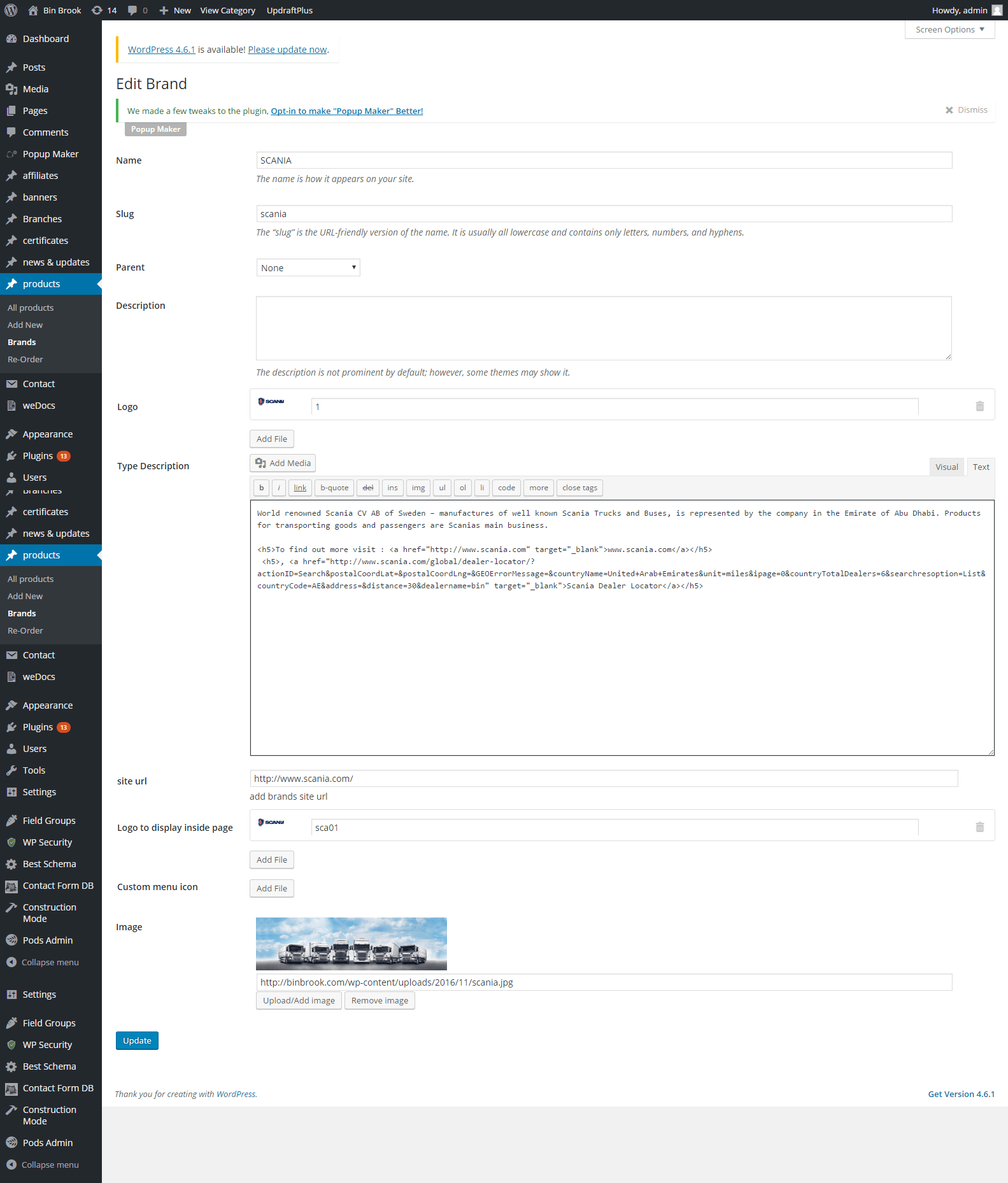 Clicking on Add New Brand to add new Brand category. The content added as Description and uploaded image as Image in each category.