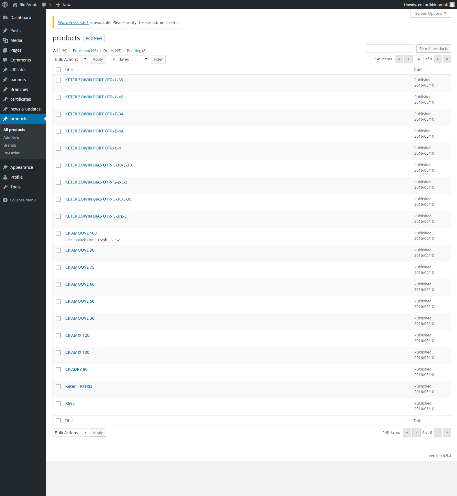 Admin can add, edit or delete products from here.All created products are listed here.The products can edit through Edit link and remove through Trash link.
